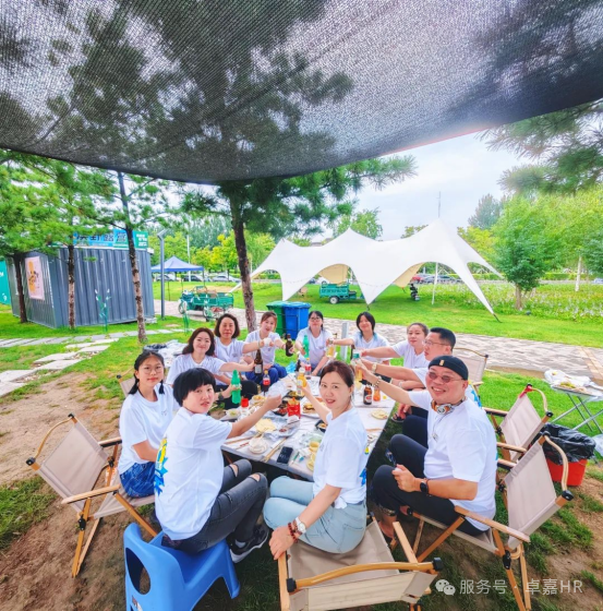 一场热闹非凡的烧烤派对就此拉开帷幕。同事们分工明确,默契协作:有的负责生火,有的忙着串串,还有的专注于烤肉,各司其职又相互配合。美味佳肴陆续端上餐桌,大家围坐在一起,尽情享用,畅聊工作中的趣事和生活里的家常。欢声笑语在营地回荡,彼此间的距离在不知不觉中愈发亲近。