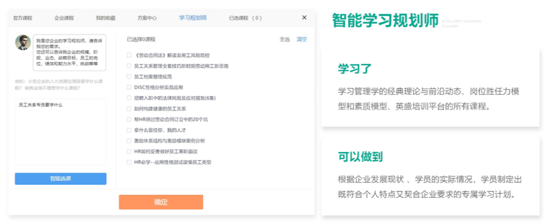 1. 智能学习规划师基于AI算法与岗位胜任力模型,为你每一位员工量身定制专属成长路径,告别“一刀切”的低效培训。